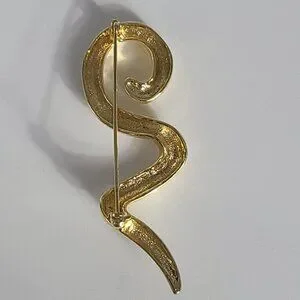 Add a touch of retro elegance with these brooches! Features a stunning abstract swirl and curl (bow) design in a bright gold tone. These modernist-style pins are perfect for jackets, sweaters, scarves or dresses.