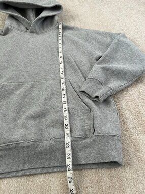 A gray cotton blend hooded sweatshirt top