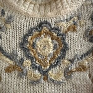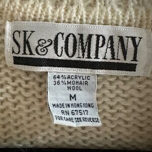 Vintage SK & Company Sweater Womens Medium Cream Mohair Wool Floral Embroidered