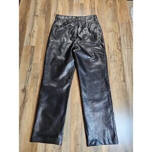 Very comfortable dressy faux leather vegan pants. These are a cropped ankle and look so classy . Size 8 black in excellent condition and come from a clean and smoke-free home. Please see measurements in the photos.