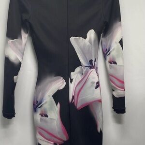 bebe Black Floral Long Sleeve Dress