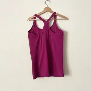 Lululemon Ebb to Street ribbed hip length slim fit B/C cup tank top with removable paddings. I think the color is Magenta purple
