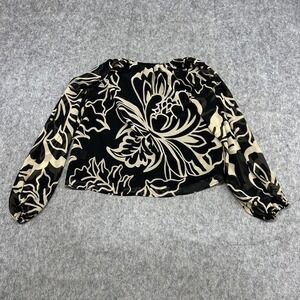Rachel Zoe Shirt Womens S Beige Floral Balloon Sleeve Chiffon Blouse Top Preppy