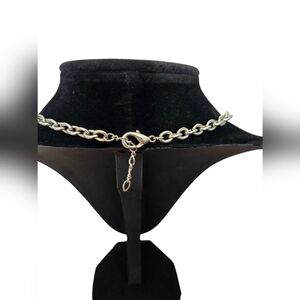 This exquisite necklace from Charming Charlie showcases a trio of warm, orange-hued gemstones set in a luxurious gold setting. The centerpiece is an oval stone, flanked by two smaller round stones, all faceted to catch the light beautifully. The delicate gold chain and decorative bezels add a touch of sophistication to this classic piece.