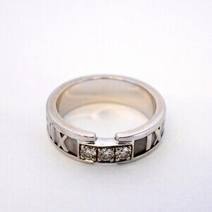 Used Tiffany Atlas 3PD Ring, 18K White Gold with Diamonds, Size 11, Women's (SKU: GZl1fv2h)