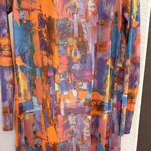 Add a burst of color to your outfit with this vibrant abstract print cardigan. Perfect for layering, this long sleeve piece is a stylish addition to any wardrobe.