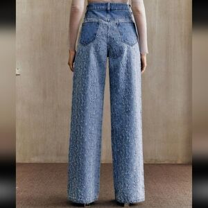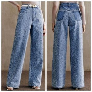 NWT Anewsta Women's Flower Weave Straight Leg Blue Jeans XS Fits Size 0-2