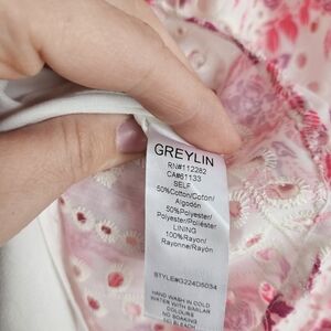 Adorable Greylin dress with pink floral design. Short sleeves and lightweight fabric. Ideal for casual outings.