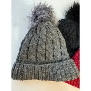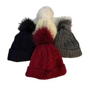 Stylish knit beanie with a faux fur pom.