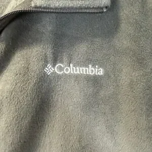 Columbia Sportswear fleece vest in a versatile charcoal grey. This sleeveless layer features a full-zip front closure, a stand-up collar, and secure zippered hand pockets. The soft polyester fleece construction provides warmth without bulk, while the embroidered logo on the chest adds a classic touch. Ideal for layering during outdoor activities or casual daily wear.