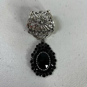 Elegant Silver toned scarf slide/bail with Black Pendant - scarf jewelry NWOT
