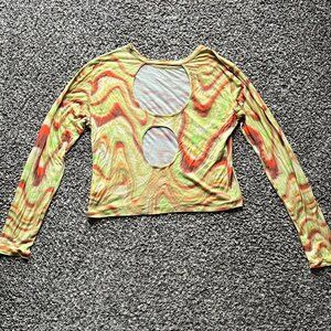 Paloma Wool Yellow & Red L/S Backless Top Women L Retro Psychedelic Futuristic