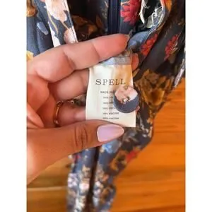 NWT Spell Flora Jumpsuit Mystic Navy Floral Wide Leg Boho Size M Cottagecore