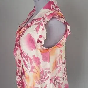 Bellambra Pink, Cream and Orange Floral Silk Blend Top