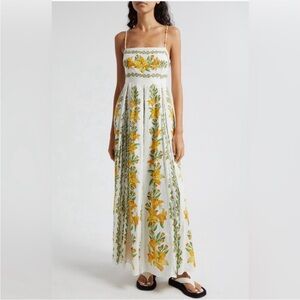 NWT Farm Rio Womens Tropical Lightness Maxi Dress Off White Yellow floral