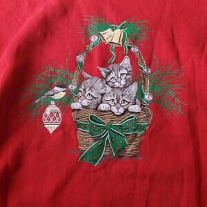 Jerzees Sweatshirt 2XL Red Christmas Cat Basket Graphic Fleece Crewneck
