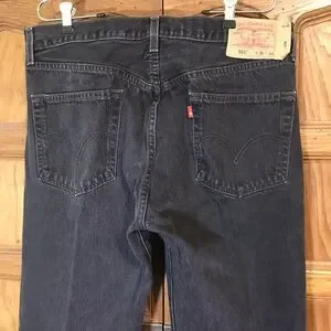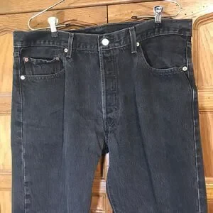 Levi's 501 Black, Straight Leg, Denim Jeans. Men's size 36x34, Mid Rise, Levi Strauss & Co. 501 Button Fly, 5 Pocket, WPL 423, Cowboy Pants. Inseam is about 33 inches after washing, but they do stretch back out.