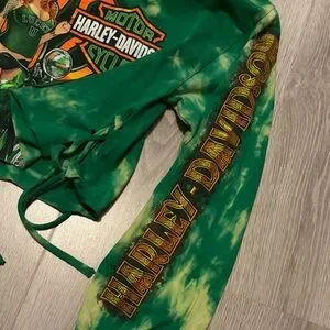 Bold crop top with Harley-Davidson logo and vibrant graphics. Features striking green and orange colors. St Patrick’s Day Outfit! #march #stpatricks day