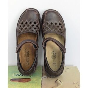 NAOT Shoes Bramble Brown Leather Mary Jane Cutout Flats Womens Size 38 EU 7.5 US