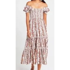 O.P.T. Daphne Floral Smocked Midi Dress by Anthropologie SZ: XS