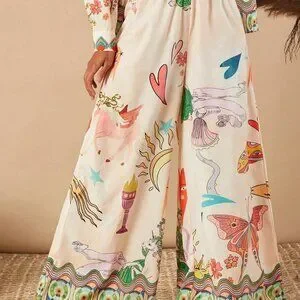 Multicolor Boho Women's Loose Wide Leg Vacation Printed Woven Pants
