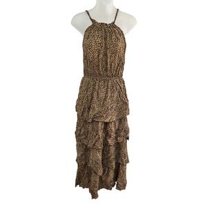 Ace Fashion Halter Maxi Dress Tiered Ruffle Animal Print Sleeveless large