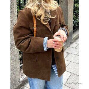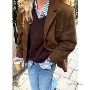 Brand new, never worn, and in flawless condition — this oversized faux suede blazer coat delivers a chic, polished look perfect for casual daily wear, the office, or a variety of outdoor occasions. The loose, comfortable fit and mid-length silhouette are both stylish and versatile.