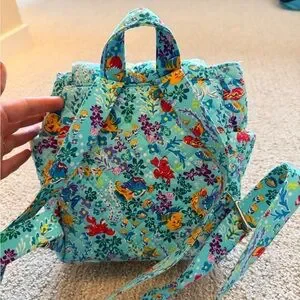 Make a splash with this adorable and retired Disney x Vera Bradley small backpack! Featuring the vibrant "Ariel Floral" print, this quilted cotton bag is perfect for a day at the parks or as a whimsical everyday carry.