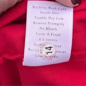 Good, preowned condition. The color of this dress is more like the stock photos and photographed more red in my photos.