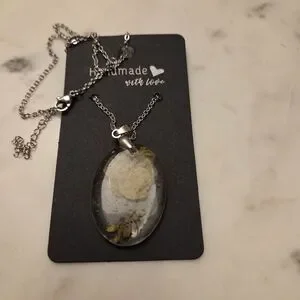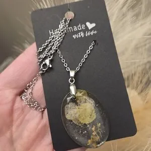 Elegant handmade necklace featuring a silver chain and a gold-accented floral pendant. Perfect for adding a touch of nature-inspired beauty to any outfit.