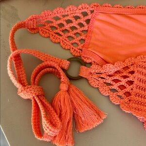 Aerie Crochet Bikini Set in Coral Top M Bottom Large