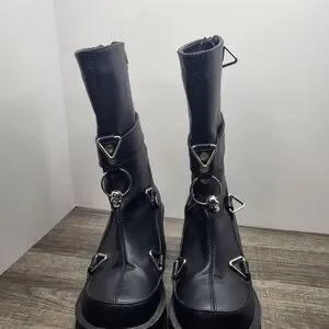 Demonia BRATTY Black Vegan Leather Platform Boots Womens 6 Goth Punk DOMINATRIX