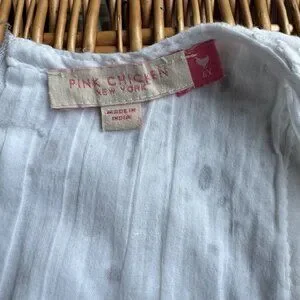 PINK CHICKEN White Eyelet Dress Girls 6 Boho Tiered Lace Summer Fringe Trim