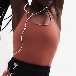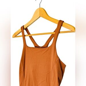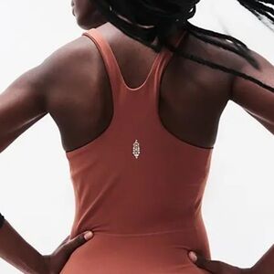 FREE PEOPLE Movement Never Better Athletic Activewear One Piece Runsie Romper in Sequoia Brown with Pockets. Hit the ground running in this runsie silhouette from our best-selling Never Better Collection. Featuring a sweat-wicking, four-way stretch fabrication with a buttery-soft next-to skin feel and a built-in bra, get everything you need for your run in an effortlessly comfortable onesie.