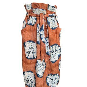 Anthropologie Porridge Skirt Size M Tie Pockets Rust Blue Off White Belt Cotton