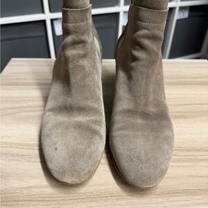 Vince Vero Cuoio Hallie Grey Tan Suede Ankle Chelsea Chunky Heel Boots