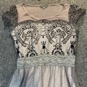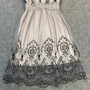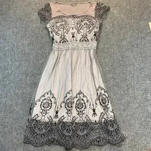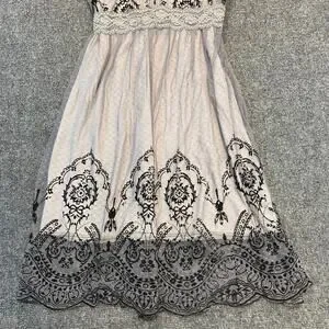 Gracia Women Medium Black White Lace Knee Length Dress Fairy Whimsy Goth Stretch