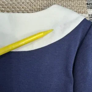 Color: Navy blue with cream/off-white contrast colorblock panels.