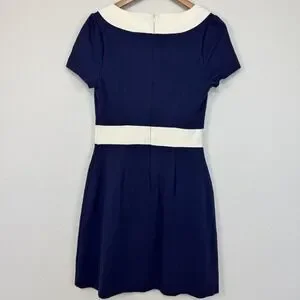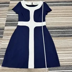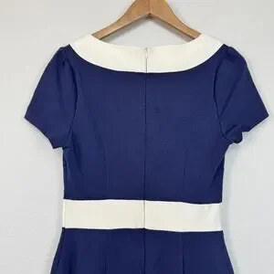 Boden Dress Women's 8 Navy Cream Colorblock Scoop Neck Fit & Flare Knit Work