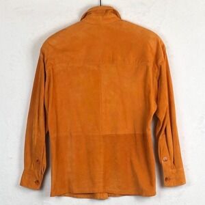Keywords: suede jacket, goat suede, designer shirt, button up, amber, fall fashion, spring style, luxury outerwear, classic silhouette, vintage designer, professional, workwear, chic, shacked, 90s, jacket,