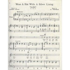 1928 Wear a Hat With a Silver Lining Sheet Music Ted Lewis Weary River