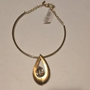 This stunning gold teardrop necklace features a sleek design with a sparkling crystal accent. Perfect for adding a touch of elegance to any outfit.