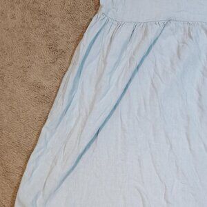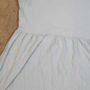 Cali1850 preowned size Large light blue short sleeve crew neck babydoll mini dress in 55% linen blend. Lightweight and breathable with flattering relaxed silhouette.