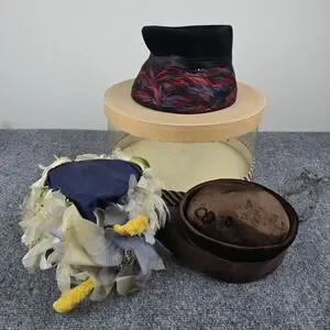 Lot of 3 Vintage Women's Cocktail Fascinator Hats + Box Needs Cleaning & Shaping