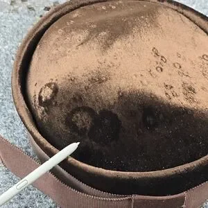 Also includes original round hat box (worn, see photos).
