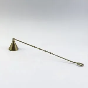Measures approximately 10 inches long. The snuffer cup is attached with a small hinge, allowing it to angle easily over candle flames.