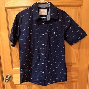 Men's Medium Hawaiian Button Floral Design, Blue Haggar Collection Shirt