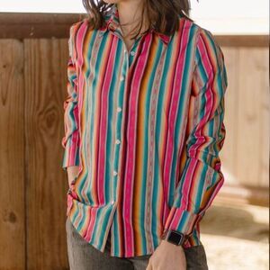 Western Cowgirl Aztec Serape Print Long Sleeve Pearl Snap Casual Top New