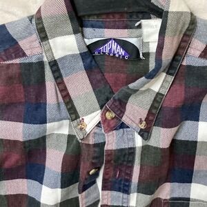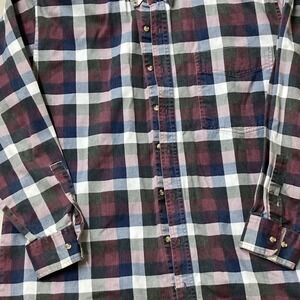 Topman Classic Mens XLT Plaid Button Down Shirt Burgundy Navy Long Sleeve Cotton