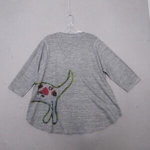 Inoah Top Large Dog Novelty V Neck Lagenlook Art to Wear Relaxed Fit 3/4 Sleeve